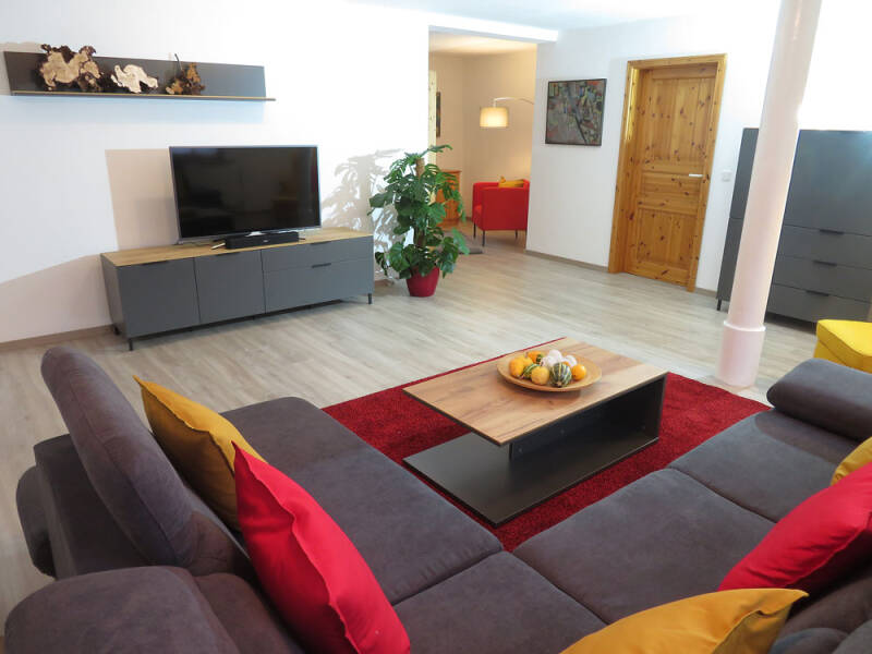 Wohnzimmer • 40 m² - Couch, 2 Lesesessel mit Bogenlampen, Flachbildschirm, CDs, Bücher, Zeitschriften